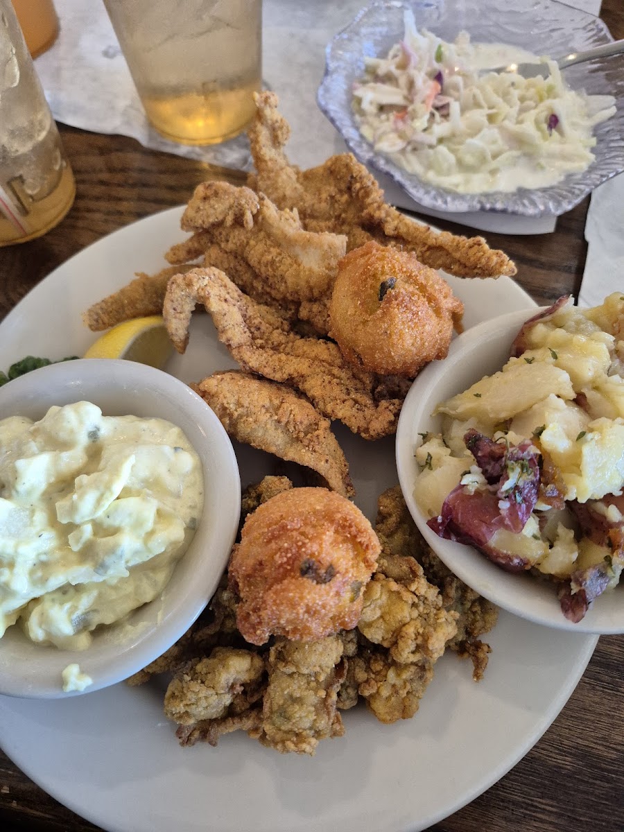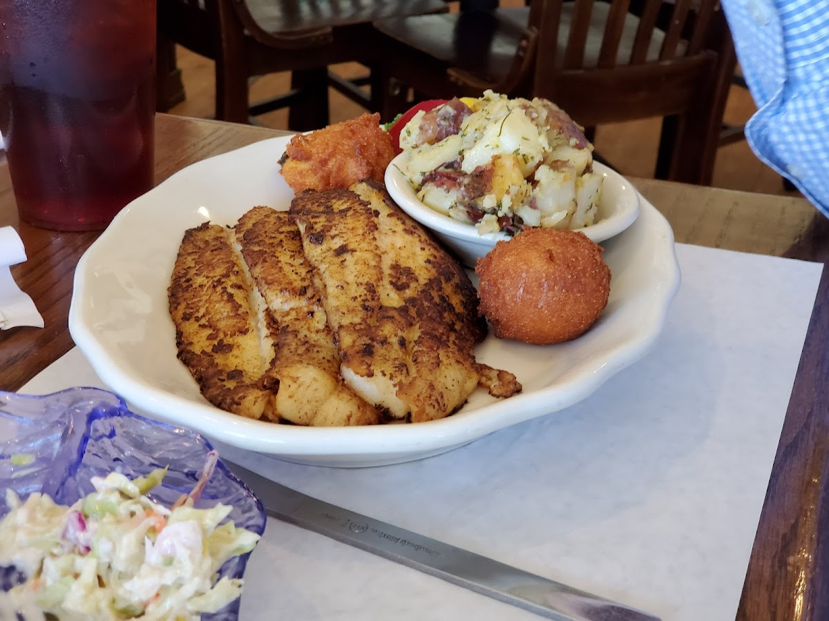 White Cap’s menu highlights include fresh oysters (both raw and grilled), seafood platters with a mix of fried and grilled items, and regional staples like crab-stuffed flounder and crawfish bisque. Fried seafood here is seasoned with a signature blend that keeps locals coming back, paired with house-made sauces that showcase a bit of Gulf Coast flavor in every bite. While grilled dishes are popular, some customers suggest they can occasionally miss the mark on moisture, so the fried options are often a safer bet.